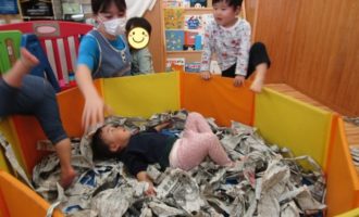 11月りす組の様子『新聞紙遊び』